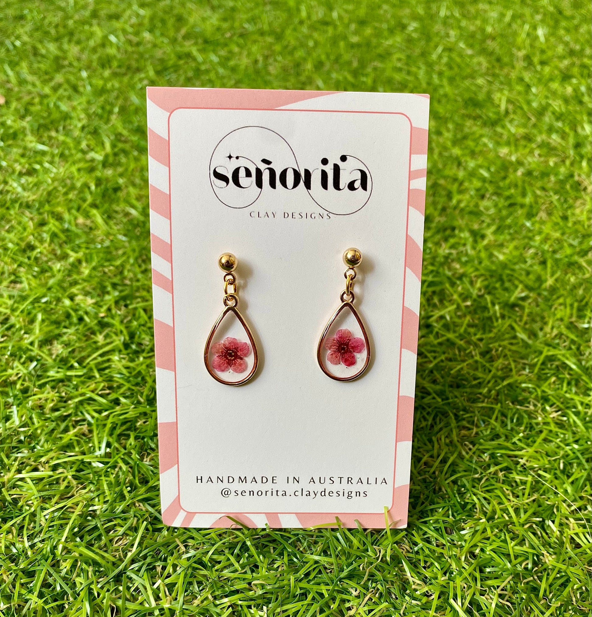 Real Narcissus and Queen Anne’s lace dried flowers preserved in resin.