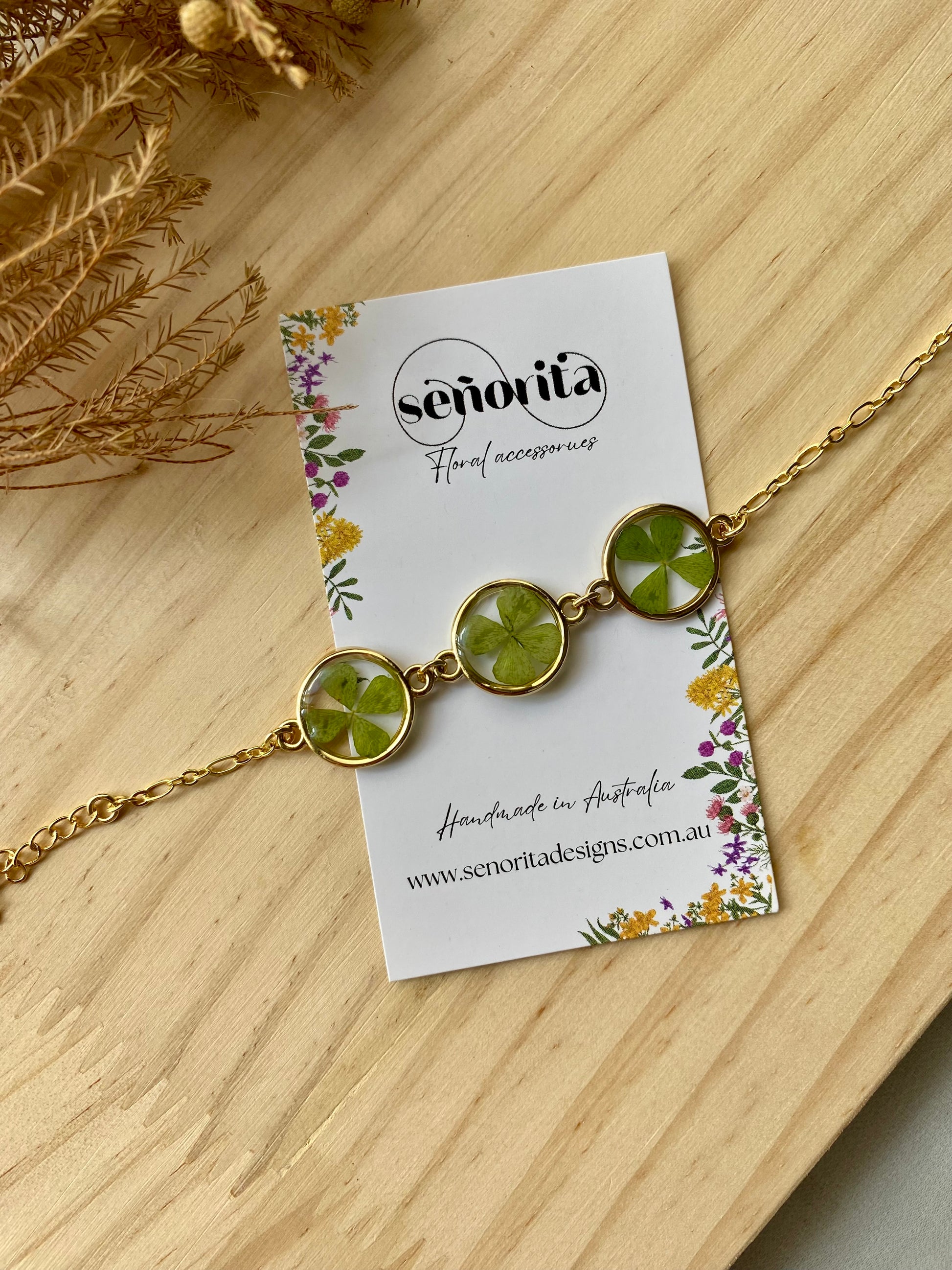 Dried narcissus flowers / 4 leaf clover preserved in resin.